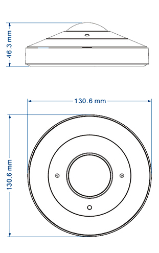 Wandhalter mit Kabelbox Mount211-11 zu IP Kamera Serie GV-GFER6900 GV-GFER12800 FischaugenkameraAbm.: Abstand 194,7mm DM: 131,1mm siehe auch Zeichnung weitere Bilder Wandhalterung für Geovision Fisheye Kameras, GV-GFER6900, GV-GFER12800 und baugleiche