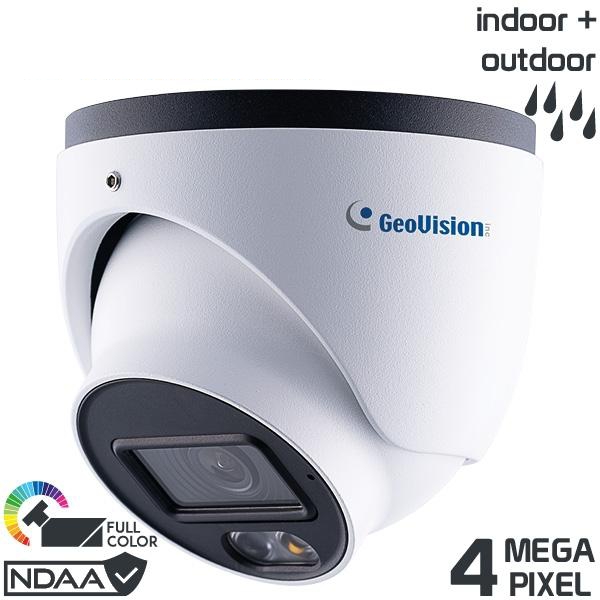 4Megapixel IP Kamera Eyeball Domekamera, IR-LED mit integriertem Mikrofon und Micro SD card slot (SD / SDHC / SDXC / UHS‐I) for local storage 4 Megapixel GeoVision IP Eyeball Full-Color Farbkamera, 2.8mm, IR, IP67, IK10, KI: 1/3" Progressive Scan Low Lux CMOS-Sensor, Objektiv: 2.8mm (F1.6), 94° horizontal, 0.005 Lux Farbe, 0 Lux SW (IR an), autom. Tag-/Nachtumschaltung mit schwenkbarem IR-Filter, integrierte IR-Beleuchtung bis 30m Reichweiteintegrierte Weißlicht-LED bis 30 Meter Reichweite Auto-Shutter 1 - 1/100.000 sek., Video Codec: H.265 / H.265+ / H.264 / H.264+ / MJPEG (Triple-Stream) max. Bildrate: 30 fps (2560x1440), Blickrichtung in 3 Achsen einstellbar, eingebautes Mikrofon, Indoor Outdoor tauglich wetterfest IP67, schlagfest IK10 NDAA-konform, Spannung: 12V DC oder PoE (6W) Umgebungstemperatur: -30°C bis +60°C Abmessungen : 94.6x82.8 mm (ØxH) Gewicht: 450 g. Bild-Funktionen: Verstärkungsregelung (AGC), autom. Weißabgleich, Gegenlichtkompensation (BLC), erweiterte Dynamik (WDR) bis 120 dB, Rauschunterdrückung (3D DNR), Privatmaskierung. Videoanalyse-Funktionen: Bewegungserkennung, vermisste Objekte, verdächtige Objekte. KI-basierte Videoanalyse-Funktionen: Linie übertreten, Bereich betreten (Personen/Fahrzeug-Unterscheidung). Weitere Funktionen: Smartphone-Support (iOS / Android). Anschlüsse: LAN (RJ45 mit PoE ), Kartenslot (microSD), 1 x Audio In. Anschlüsse: LAN (RJ45) PoE LAN (10/100 Base-T) Inklusive: 32-Kanal Videomanagement per Download