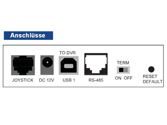 RS485 Joystick bzw. RS485 Bedienpult 3-axial System-Controller. Ergonomisches Design RS485 Controller für steuerbare Kameradome mit beliebige Systemprotokolle via RS485 für PTZ Dom, Kameradome, Motorkameras, Motorzoomkmeras, DVR, Matrix usw. RS485 Multiprotokoll - Bediengerät in robuster Bauform auch für höhere Beanspruchungen Technische Daten: 3-axial System-Controller Einstellbare IDs = 1...255 ( Somit max 255 Geräte wie PTZ Dome-, oder Motorzoom Kameras, DVR mit RS485 Port ansteuerbar ) Einstellbare ID aiuch für den Joystick ( Set KB ID 1...255 ) ab Version 1.07 Internes LCD-Menü ( SET Taste länger als 2 Sekunden gedrückt halten ) Steuerung über RS-485 Schnittstelle ( RS 485 RS422 Schnittstelle ) Wählbare Steuerungsart ( Dome oder Matrix / Multi KB = ON-OFF ) Wählbare Protokole: Pelco D / Pelco P / Vido B02 / Dahua / Hunda600 / Factory Einstellbare Übertragungsrate per LCD Menü: 2400 / 4800 / 9600 / 19200 bps Joystick Kalibrierung per Menu: Ja integriert maximale Reichweite 1200 Meter (bei verdrilltem Kabel 0.5mm Anzahl an Preset Positions: ? Wächtertouren programmierbar Ja 12V Spannungsversorgung: 9 bis 12V DC Anschlusse 1 x RS-485 (2 Draht Klemme ) 1 x RS-422 (4 Draht Klemme ) 1 x RJ45 Buchse nur für Matrix und 12VAC 1 x Hohlsteckerbuchse 2,1/5,5mm Abmessungen: 218x98x180 mm (BxHxT) Gewicht: 700 gr Inklusive 230VAC Netzteil ( 100-250VAC 50/60Hz ) Zusatztipp von uns zum Thema UTC / Coaxitron : Um diesen RS-485 Joystick auch verwenden zu können mit den aktuellen HD Kameras die per UTC bzw. Coaxitron über das RG59 Koaxkabel angesteuert werden müßen, da empfehlen wir hierzu unsere Bst Nr 64-700-04930 dies ist ein Signalkonverter RS485 auf UTC bzw. Coaxitron Konverter mit Bildsignalkonverter auf HDMI. Wobei wir das getestet haben, Sie können den empfohlenen UTC Konverter auch als reiner RS485 auf UTC- bzw. Coaxitron Konverter benutzen oder natürlich mit der integrierten Bild-Umwandlungs-Funktion HD CVI auf HDMI oder VGA. Diesen optional erhältlichen Signalkonverter finden Sie wenn Sie die Bst Nr 64-700-04930 unter dem SUCHEN Feld eingeben, oder in der Zubehör-Liste anwählen. Fragen ? Kein Problem einfach anrufen !