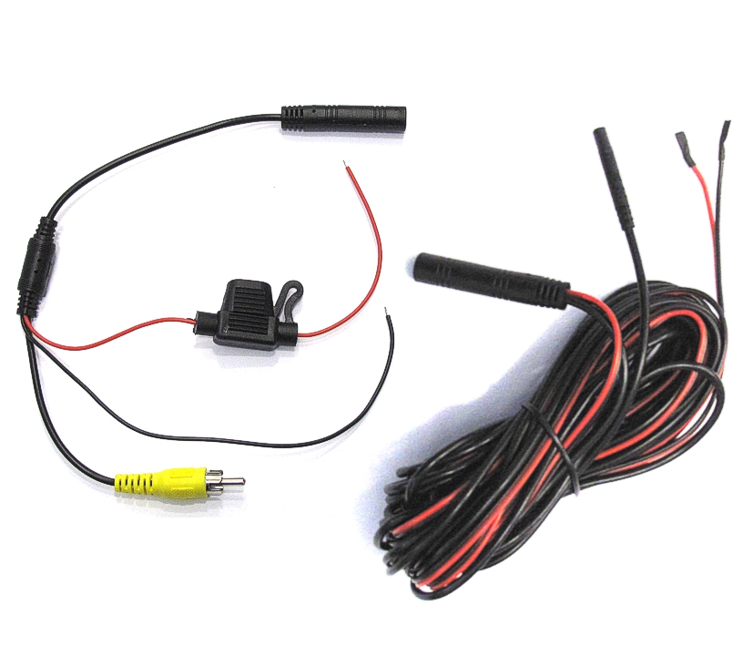 + Anschluss: rot: +12V / +24V abgesichert / Schwarz: Karosseriemasse direkt GND + Cinch gelb: Videosignal