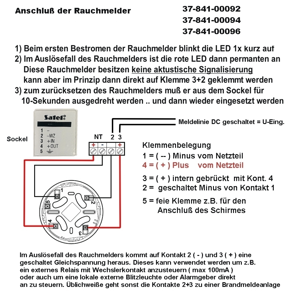 - Installation externe 12V Versorgung und Relaiskontakt des Rauchmelders wird z.B. auf ein Wählgerät verdrahtet :