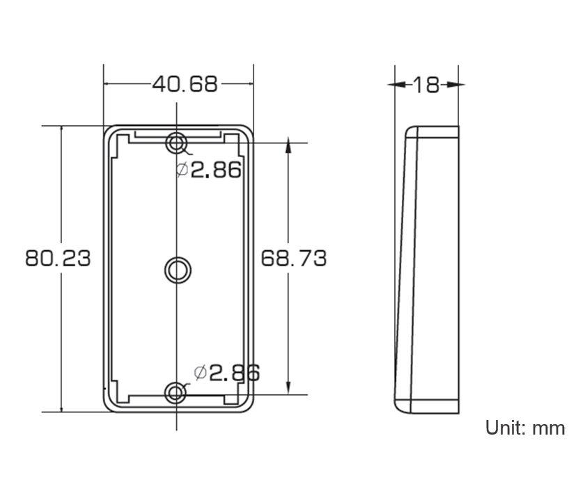 Abmessungen B: 43mm L: 81mm T: 18mm